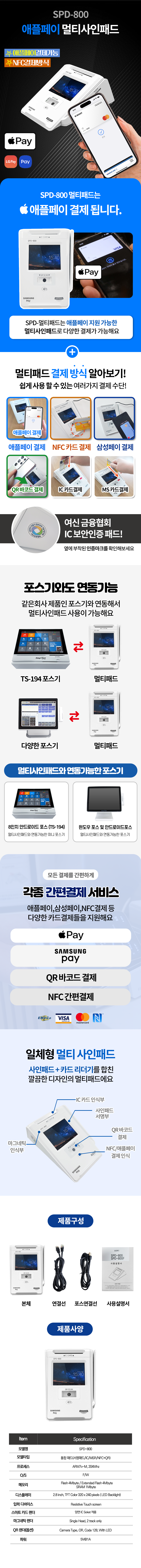 신화포스 NFC 애플페이 QR멀티서명패드 이지체크 KICC VAN 사용 중 SPD-800